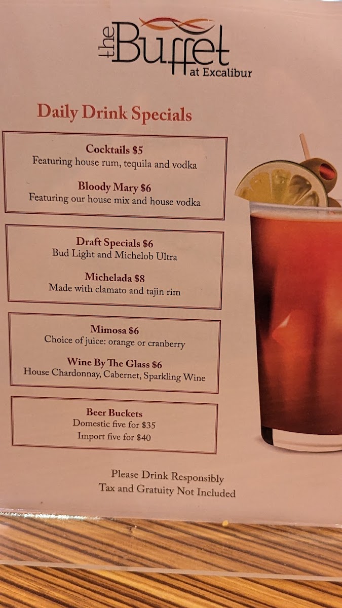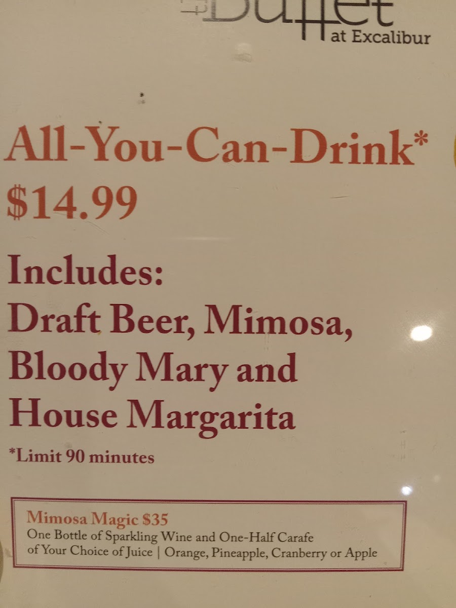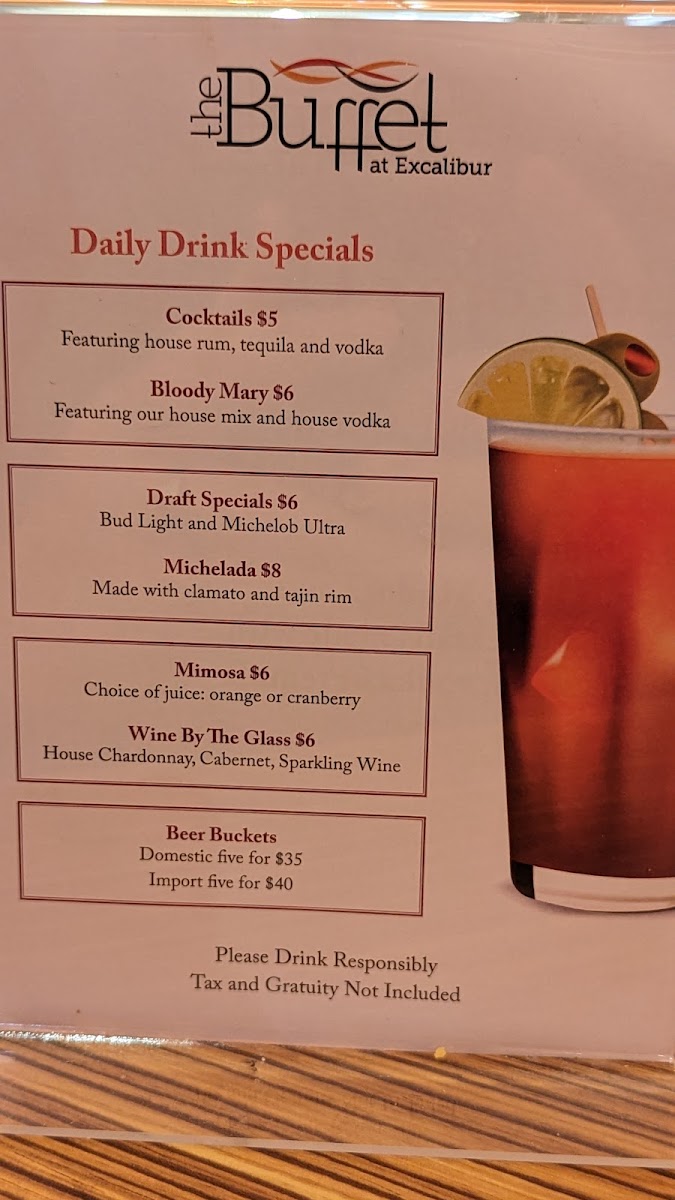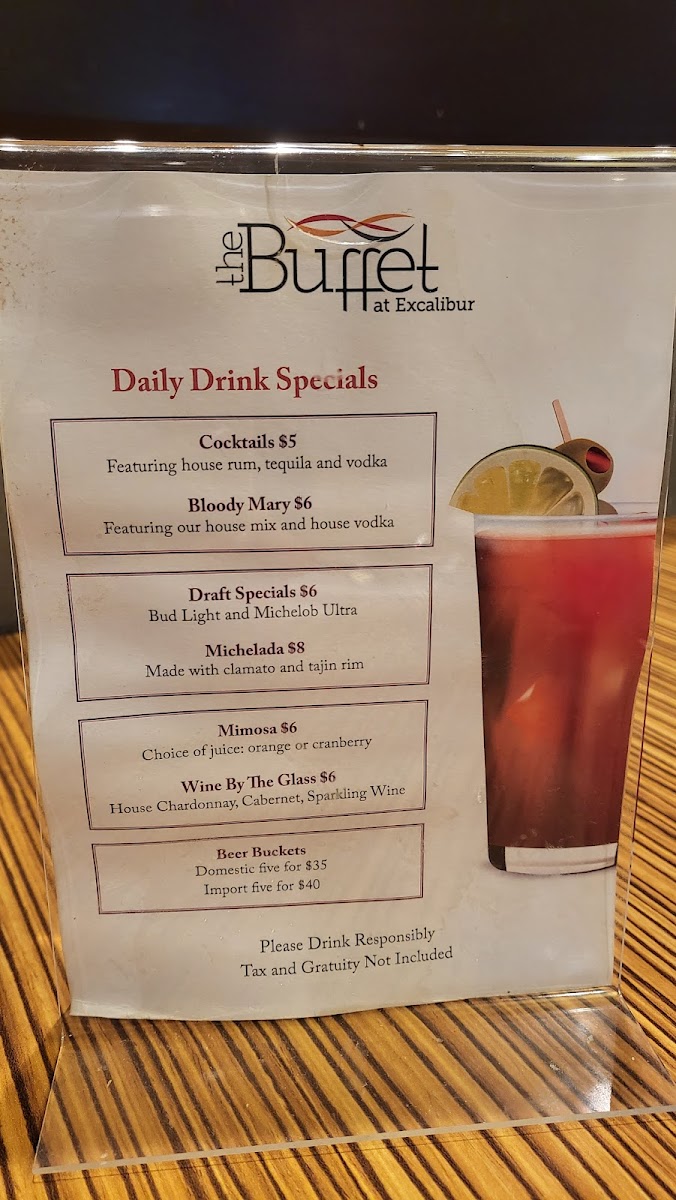The Buffet at Excalibur Menu